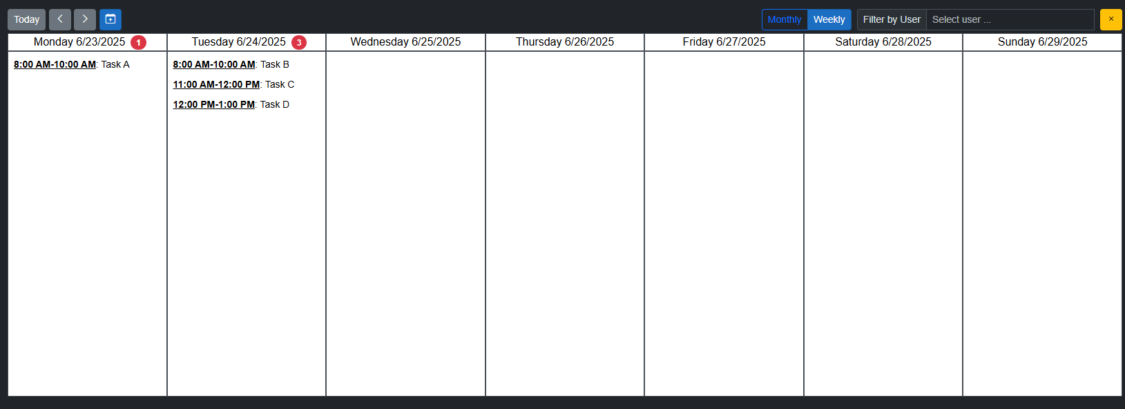 - Task Management Create and assign tasks to pharmacy staff with calendar views for daily, weekly, and monthly planning.