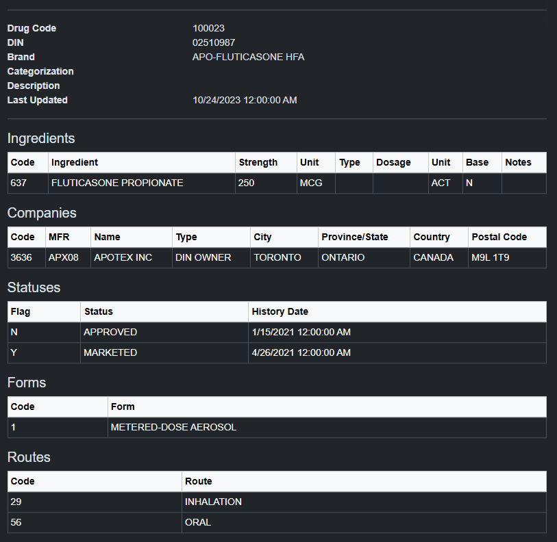 - Drug & Ingredient Lookup Access rich details about drugs and ingredients including brand names, market availability, and product details.