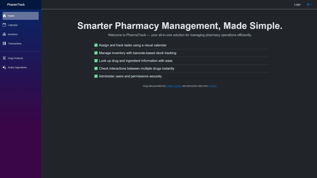 PharmaTrack is a free, fully self-hosted, modern solution designed to empower small and medium-sized pharmacies with the tools they need to operate efficiently and safely. It offers: